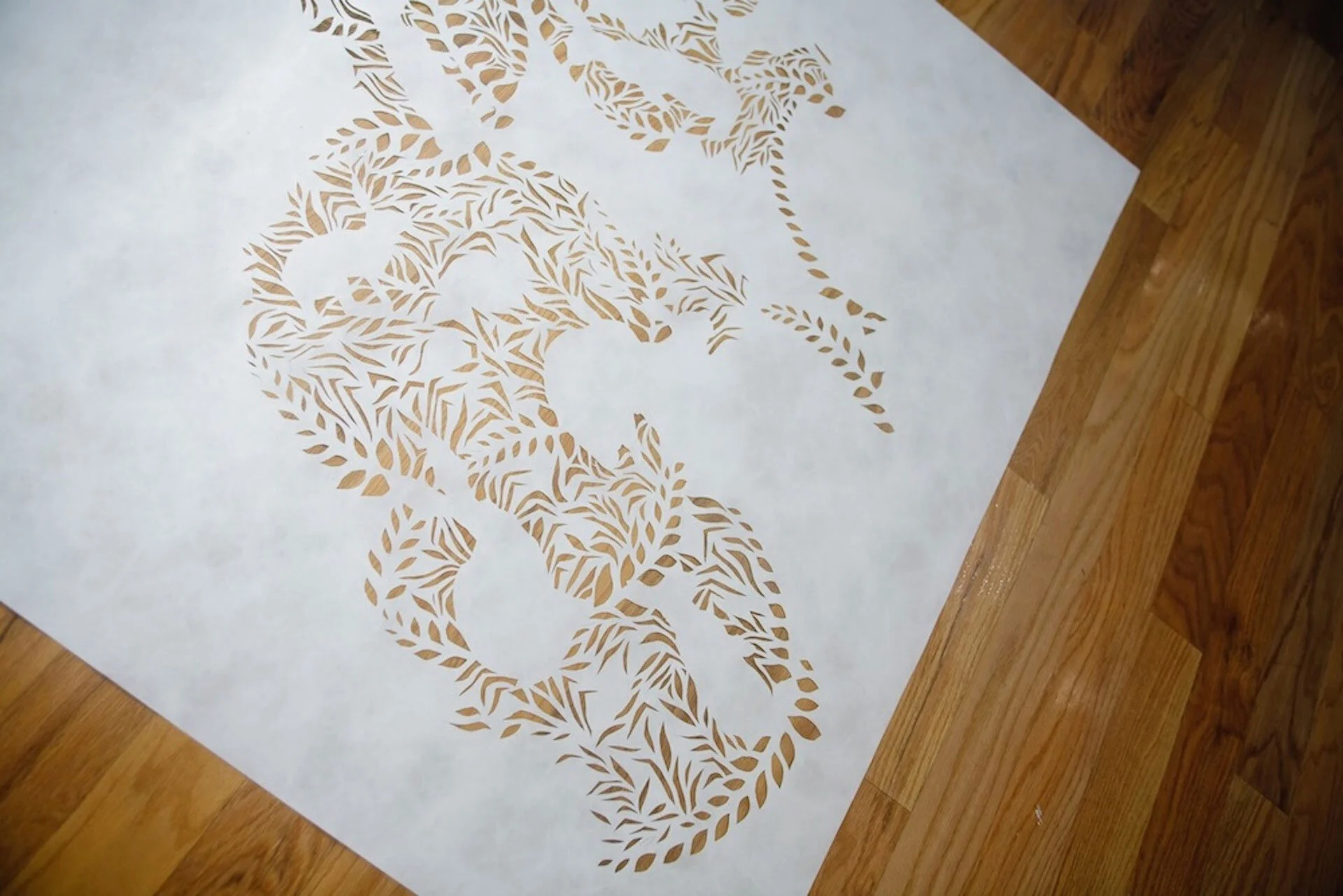 The Shinto religion encourages the proliferation of stories. This religion, from which all true Japanese mythology springs, accepts that every natural thing, be it man, a volcano, or plum tree, has a kami or spirit. Kami has been translated as a soul, a spirit, and a deity. Another possible translation of the word is “beings placed higher.” Nature, in other words is inhibited by Kami. With this body of work, I use a balance of abstract and representational forms in order to sever the connection between shape and meaning, connecting the viewer instead to the cut of the knife, so that s/he becomes complicit in the art. Folklore, reverence, refinement of nature, observance of daily life, are the concepts behind my work. Using folklore as the source of my artistic inspiration I mean to return the viewer temporarily to a state of childhood, dwelling in the senses, immersed in the images of stories, experiencing the primacy of the physical. Whether the viewer, when they turn away from the canvas, or scrolls, seeks mental liberation, or sensory indulgence, is a matter of significance for them. I am less interested in directing their conclusions as I am in revealing them. The desired effect of this body of work upon the viewer is self-investigation. This work was made in reponse to my time spent in during my arist residency at Studio Kura, Fukuoka, Japan.