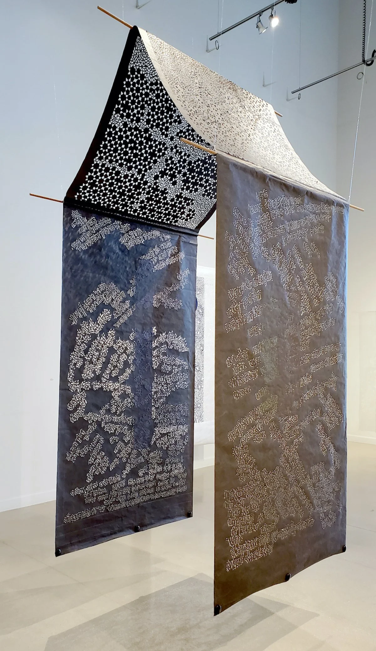 hand-cut Tyvek and 3 wooden rods (Photo from “Globia Impact, taken at the Foundary Art Centre)
